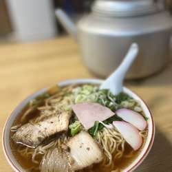 ノスタ系のビジュアルの中華そば。鰹だしのきいた和風のスープ。