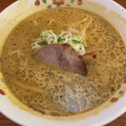 送迎のため空港でランチをこちらで。出発前の方が多く居たためか着丼まで15分。スープは味噌とカレーのバランスが良いため、両方とも感じられる。縮れ麺もスープとの絡みが良くススり甲斐がある。具材はシンプルだが、スープがおかずみたいなのでOK。チャーシューは大判で昔ながらの良い感じのもの。気づいたら完飲完食です。大変美味しくいただきました。ごちそうさまでした。