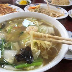 スープは鶏ガラや野菜の優しいもので微かに生姜が効いているような気がする。