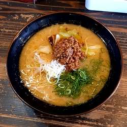 焦げ目がつくまで炒めたキャベツの上に甘辛い挽肉と2種類のネギをトッピング。スープは濃厚ですがさらりとした甘口の味噌ラーメンです。