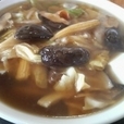 醤油ベースのラーメンの上にやや辛いあんがかかっています。具は肉、キャベツ、ニンジン、しいたけ、ヤングコーンなど。程良い辛さで旨みを堪能でき非常にバランスの良い仕上がりになっています。