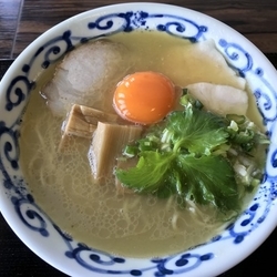 骨太ながら鶏白湯とは思えないほど軽やかな口当たりのスープに、適度にハリを残した自家製細麺が隙なくマッチした、麺とスープだけでも十分な説得力を有する一杯。