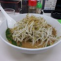 スープも味噌汁感ゼロ、動物系の出汁が効いていて良し、麺もチェーンのラーメン店のような加水率高めの量産型でない、小麦感のある麺で良し、モヤシの茹で加減もよし。