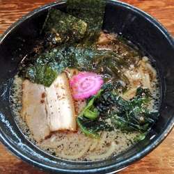 基本のとんこつ醤油をラストという事で豪勢に海苔、チャーシュー、ほうれん草、キクラゲを追加トッピング。