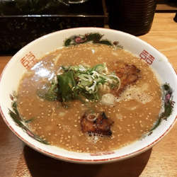 出張のついでになんとなく寄った店。オススメを聞くと「炙りチャーシュー」とのことで注文。店内はおしゃれで、昼はラーメン、夜は居酒屋らしい。近くの山陽オートの選手のサインがびっしり。