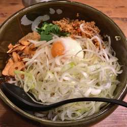 魚介ダシがガツンと効いたスープに、食べ応えのあるもちもちな太麺と合わせ、トッピングのニンニクや玉子もよく合いますので、解きながらお召し上がりください♪