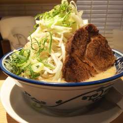約7分程で着丼。おー、中々のビジュアルです。モヤシ中心のヤサイは味が付いていないため濃厚なスープをすくって... 続きを見る