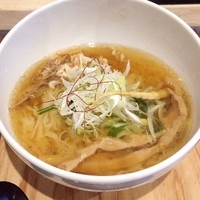 平日の昼間 オープン直後に訪問 入店後に店員さんに喫煙か禁煙かを聞かれ喫煙を選択(分煙されてます) 表記を注文(麺は自家製麺か熟成麺か選択可)先客3名の状態なので待つ事 数分での対面となりました 見た目・・・・駐車場の看板とメニューの写真と明らかに違い チャーシューが見えず葉物のボリューも無し・・・・ 具はほぐれたチャーシュー1枚 穂先メンマ数本 水菜 刻みネギ少々 白髪葱 糸唐辛子 味玉 まずはスープ 表面に鶏脂が浮かんでます 味は鶏の旨味が充分に出て返しの塩梅も良し 美味しいです 中細の縮れ麺との絡みも良し ... 続きを見る
