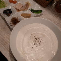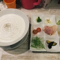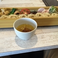 一見、初代@恵比寿のカレーうどんと酷似してるが、こちらのは軽やかでスープにサッと溶け出す。アサリの旨みで深みを増した鶏白湯が細麺を包む一杯は、単体でも十分な完成度。