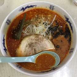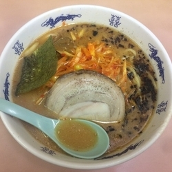 黒白のゴマが浮かんだ真っ赤なスープはほど良い辛さ。こがしニンニクも味噌のコクを引き立てます。