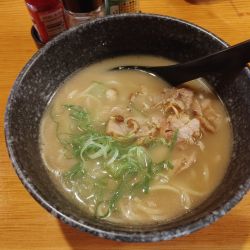にんにくの風味が効いた甘めのカエシの醤油ラーメン。ほっこりする安定の味。ラーメン注文でライス1杯無料もありがたい。深夜も営業しており重宝するお店。テーブル席充実で家族向けの店舗です。ごちそうさまでした。