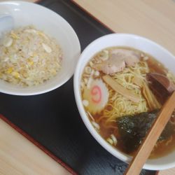 セット名をうっかり失念してしまいましたが、ラーメンと半チャーハンのセットメニューで、今回は醤油で頂きました。