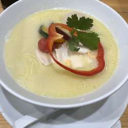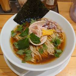 平日夜9時頃に初訪問。この日は暑かったので、つけ麺と決めて入店しましたが、券売機を見ると辛うじてつけ麺で標題の品だけが購入可能でした。テーブル席に案内されました。店員さんにチケットを渡し、待つこと数分で配膳された丼には、ローストビーフ、焼き目のついたヤングコーン、三つ葉、海苔、カットレモン、麺は黄色い中細ストレート麺、つけ汁は青ネギが浮いた茶褐色の塩系。麺とつけ汁の相性はよく、... 続きを見る