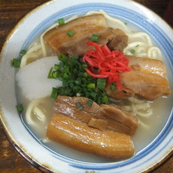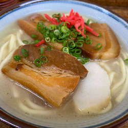 沖縄そばでは珍しいほど濁った豚骨白湯。