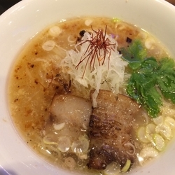 | 備考 | 麺劇場 玄瑛、GENEI.WAGANに次ぎ、玄瑛系列3店舗目。 各店舗、味と内容はそれぞれ異なる。 化学調味料無添加のスープは豚骨白湯ベースの醤油味。 ※チャーシューはイベリコ豚だが使う豚骨はイベリコ豚ではない。 味の決め手は海老と貝柱の自家製XO醤。 麺は麺劇場 玄瑛で打ったものを輸送した自家製麺。 店舗内観は近未来をイメージ。 また客席に使われる椅子は イタリア・カルテル社の日本人がデザインした「AmiAmi」。 警察の盾にも使われる強度な素材だとか。 (以上は取材より) |