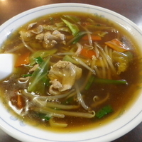 店はカウンター・テーブル・小上がり席で25人まで入れる。調理場の中にいる男性1人と接客配膳の女性1人の計2名で切盛りしていた。入口を入ると券売機はなく口頭注文の後会計システム。。空いていたテーブル席に着くと直ぐに水を出してくれた。壁に掲示された短冊メ... 続きを見る