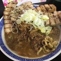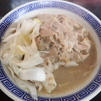 豚の煮汁で勝負するスープは中々濃厚な出来。やや甘めに仕上げ、濃い目にしたカエシと葱の香りは流山の有名店を二郎風にアレンジしたかの様相。
