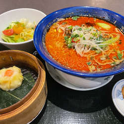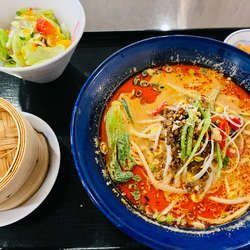 坦々麺には焼売、サラダ、ザーサイセットで付いてき税込1500円!