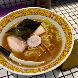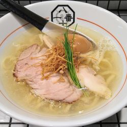 14:30着で先客1名。5分ほどで着丼。ホタテ油がほのかに香る大山鶏のすっきりしたスープに小麦香る麺がマッチ。えのきの揚げたものがアクセント。鶏チャも味が染みている。豚チャは吊るしチャーシュで燻製が香り、美味しい。バルサミコ味玉は酢と甘味の感じられる珍しいもの。