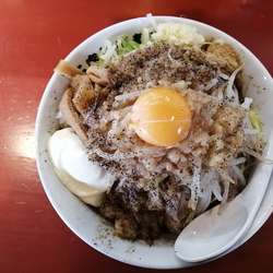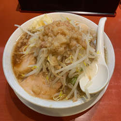 麺は平打ち系の太麺!味は良く美味しいんですが、麺の長さが普通の二郎系の麺より長いので、啜りにくかったです!