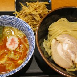 いただいたのはチャシューやさいつけそばの中盛です。「チャーシュー」ではありません。目白丸長では「チャシュー」です。