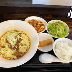 初訪にて、ランチ=3択の中から「日替り麺ランチ(汁なし担々麺)¥950」に「ハーフ麻婆豆腐¥200」ぉ。