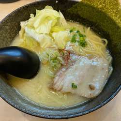 具材は、キャベツ、チャーシュー、玉ねぎ、海苔、糸唐辛子。