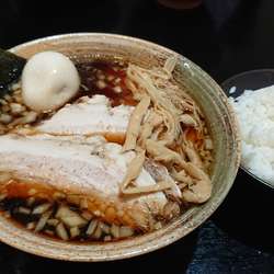 粗微塵切りの玉ねぎと見た目は濃そうだけど、チャーシューを煮込んだタレで作るアッサリした醤油スープが特徴です♪