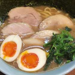20/4/21訪問。過去分ですが、閉店しているので、足跡を残させていただきます。黒マー油ラーメン(750円)を、麺固めで。スープは、ライトな豚骨醤油だが、マー油がしっかりと効く。商品名にあるような黒いビジュアルではない。麺は、固めコールが効いた太麺。染谷製麺の麺箱有り。具は、ネギ・海苔5枚・ほうれん草・チャーシュー二枚。家系で、海苔5枚・チャーシュー二枚は珍しい。
