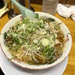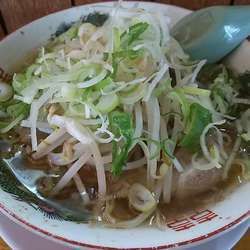 久しぶりにこちらのお店。Qラーメン。どーんとのるもやし、刻みネギ、そのしたにビジュアル。薄切りのチャーシューが5枚ほど、具材は量が多い。先ずはスープから、脂が層を作っているがそれほどこってりでなく野菜と動物系の旨味がしっかりと感じられ、そこに醤油のまろやかな旨みが合わさり旨い。麺は黄色い表面の中細麺の縮れ麺で茹で加減が丁度よく、シコッパサッと独特な食感でこれがまた旨い、そこにも... 続きを見る