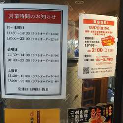 | 営業時間 | 11:00~15:00/17:00~23:00 ※ラストオーダーは各20分前 |