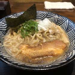 平日夜8時過ぎに訪問。店内に先客5名、後客0名。事前によく調べなかったので、券売機で左上の法則で標題の品のチケットを購入し、店員さんに渡してからカウンター席に着席。程なくして配膳された丼は、海苔1枚、味玉1/2が2個、穂先メンマ、白と青の刻みネギ、レアチャーシュー2枚がトッピングされており、麺は中細ストレート麺。鯛出汁淡麗系のスープは、それほど鯛を感じませんが、上品な味わいです... 続きを見る
