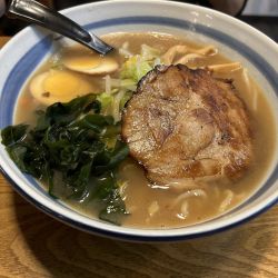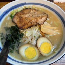 お勧めの野菜味噌ラーメンのワンランク上になる『金の鈴 野菜味噌ラーメン』を注文💡野菜味噌ラーメンに比べて焼豚の厚さが2倍とニンニクがプラスされるようです🧄スープの濃さが選べるようなので他レビューを参考に濃いめで注文👍優しい味の味噌スープは個人的濃いめで丁度良い塩梅でした⭕️焼豚も大判で見栄えが良く香ばしさがあります🍖麺は中細の縮れ麺で、札幌系とは一味違うオリジナルな味噌ラーメン... 続きを見る