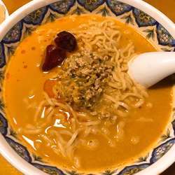 柳麺(細麺)、中太麺(揚州麺)、極太麺(刀切麺)から極太麺をチョイス。刀削麺ならぬ刀切麺だとか。雰囲気は刀削麺と同じモッチモチグミグミな食感、小麦粉の力強さを感じられるものだ。スープは芝麻醤の甘さが際立つもの。チョイと辛味成分が少な過ぎやしないか。メニュー表には「激辛」と表記されているが0.1丁目程... 続きを見る