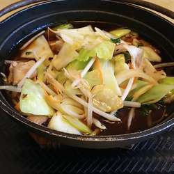 具は、もやし・キャベツ・青菜・豚肉。しっかりと炒められていて、それぞれ美味しい。