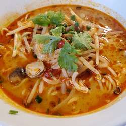 スープは、適度な辛さの麻辣味。仄かにトロミが付くスタイル。鉄鍋のような器での提供。