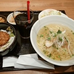 | メニュー | ●蒼ランチD(鶏そば+ミニソースカツ丼+アイスコーヒー)850円 |