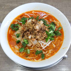 豚骨ベースのサラリとした醤油清湯に、辣油の辛さが結構辛くてヒーハー汗だく(^^)
