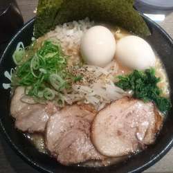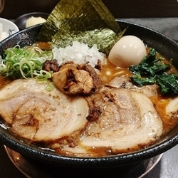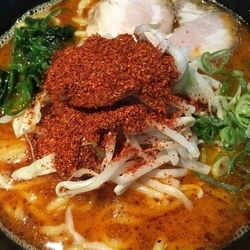 スープはドロドロ、しょっぱさも程よい感じです。濃くしっかりした味が縮れ麺にからんで美味しいです。