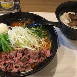 「牛そばビーフ100g 大盛味玉追い飯」@牛そば まるはの写真珍しいメニューを食べに来訪です。