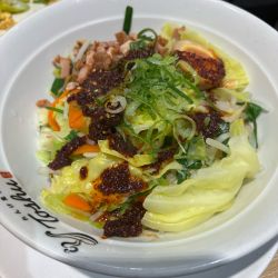 豚骨ベースのスープに唐辛子ペーストで辛味を出したスープ。これがいい感じの辛さで美味しい。